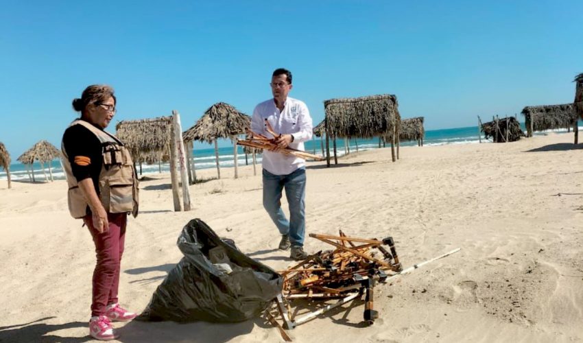 Las cuadrillas lograron limpiar aproximadamente cinco kilómetros de playa, recolectando cerca de mil 800 kilogramos de residuos. Entre los materiales retirados se encontraron estructuras metálicas de toldos abandonados, plástico PET, vidrio y materia orgánica, desechos que afectan directamente a la fauna silvestre y representan riesgos para la salud humana.