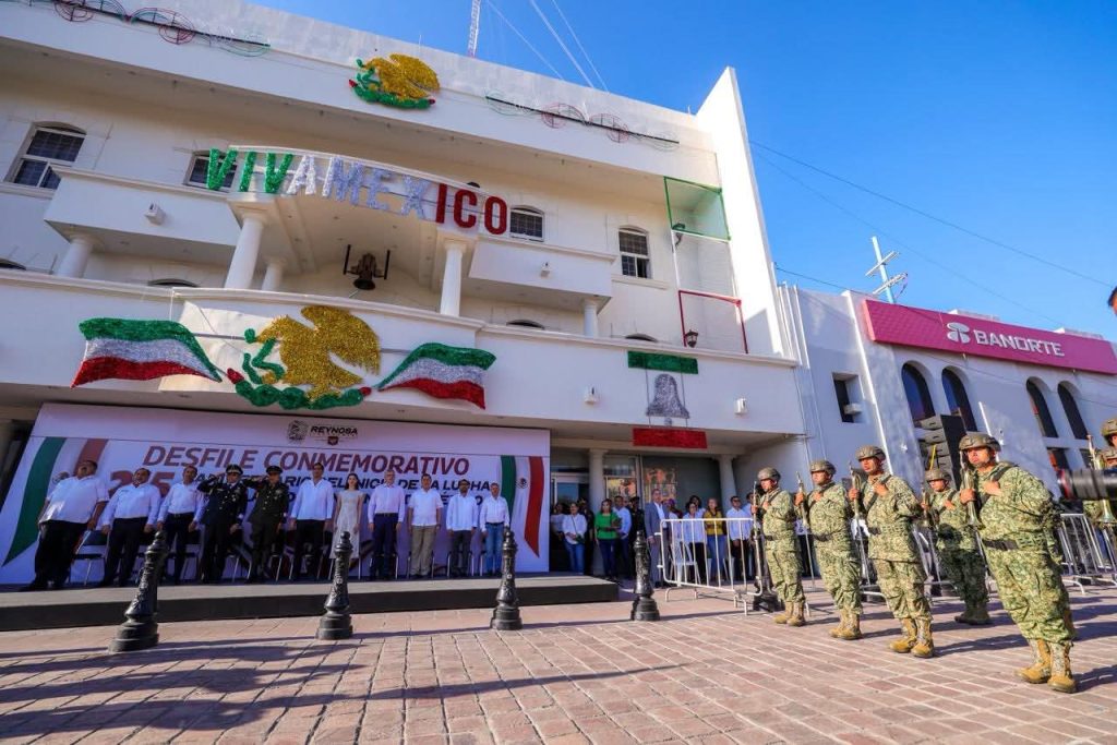 Los coloridos contingentes escolares y de corporaciones de seguridad en Reynosa, encabezados por las Fuerzas Armadas, Guardia Nacional, Policía Vial y Protección Civil y Bomberos, desfilaron ante los asistentes, entre ellos la Diputada Federal, Olga Juliana Elizondo Guerra; el Diputado Local, Juan Carlos Zertuche Romero; Ricardo Martínez Cavada, Agente MPF; Coronel de Infantería DEM Milton Carlos Pantaleón Rocha, Comandante del 12⁰ Batallón de la GN; Jorge Guadalupe Acuña Tovías, del SNTE; Héctor Alejandro Olivares Zavala, Secretario de Bienestar Social Municipal, y las familias reynosenses.