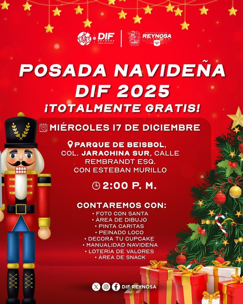 .-Este miércoles, con actividades para los niños. El Sistema DIF-Reynosa que preside Carlos Luis Peña Garza, realizará la Posada Navideña 2025 con el objetivo de fortalecer la convivencia familiar y llevar momentos de alegría a niñas, niños y familias de la colonia Jarachina Sur y sectores aledaños. El evento se llevará a cabo este miércoles […]