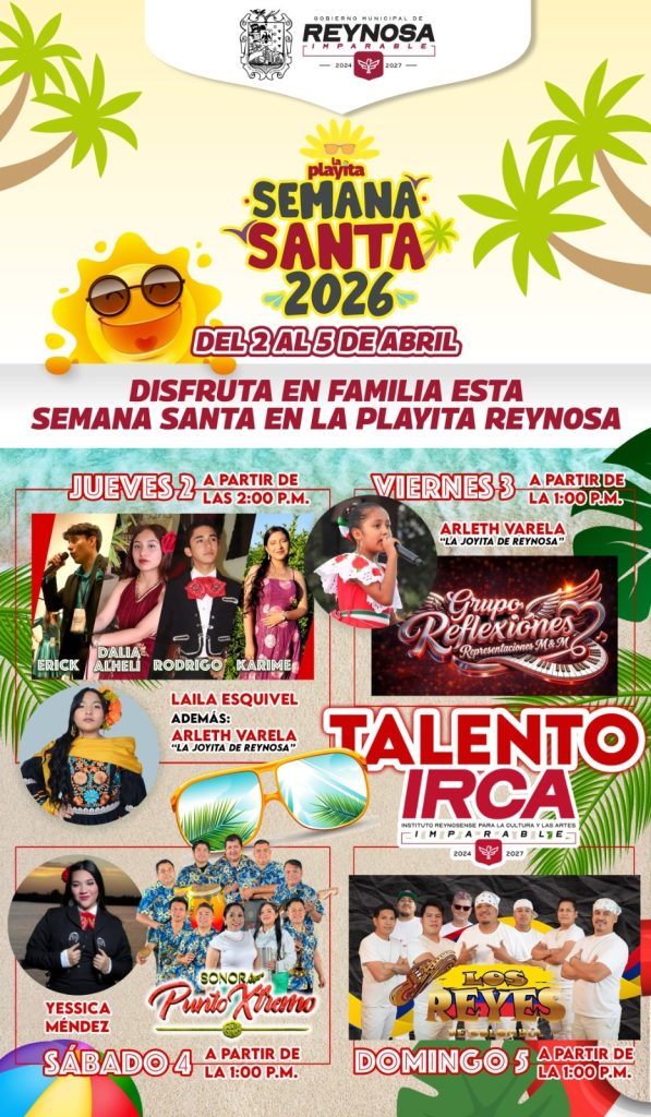 El Gobierno de Reynosa, que preside el Alcalde Carlos Peña Ortiz, invita a disfrutar de la oferta musical que el Instituto Reynosense para la Cultura y las Artes presentará en “La Playita” del 2 al 5 de abril en el marco de la Semana Santa. El programa inicia este jueves a las 2:00 P. M. […]