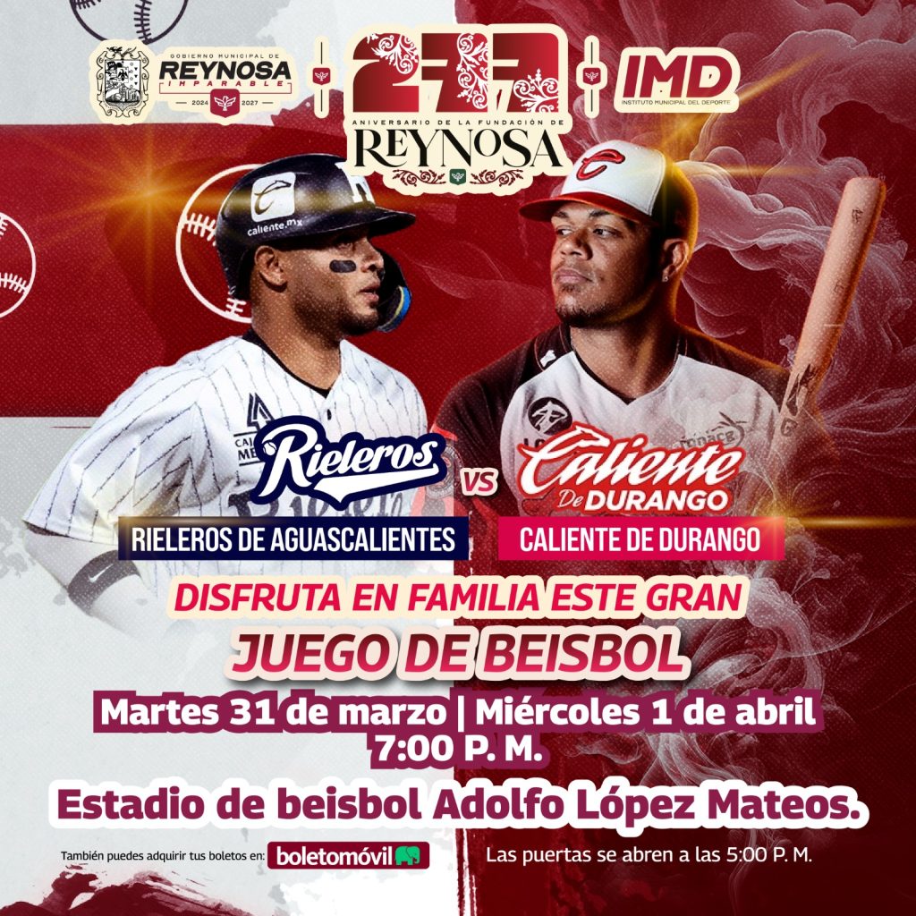 Hoy miércoles 1 de abril el parque Adolfo Lopez Mateos es el escenario del Beisbol Profesional “AAA” en Reynosa y el Alcalde Carlos Peña Ortiz te invita a disfrutar un encuentro entre los peloteros del Club Rieleros de Aguascalientes y los Lobos del Club Caliente de Durango a las 7:00 de la noche con el […]