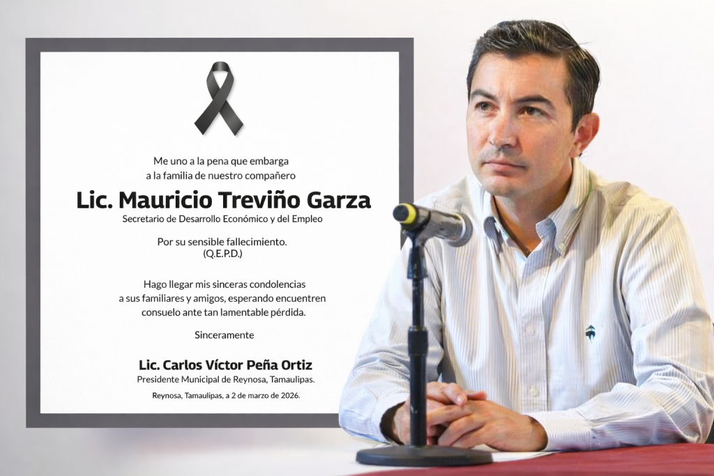 El alcalde de Reynosa, Carlos Peña Ortiz, expresó su pesar por el fallecimiento de Mauricio Treviño Garza, quien se desempeñaba como Secretario de Desarrollo Económico y del Empleo del municipio.