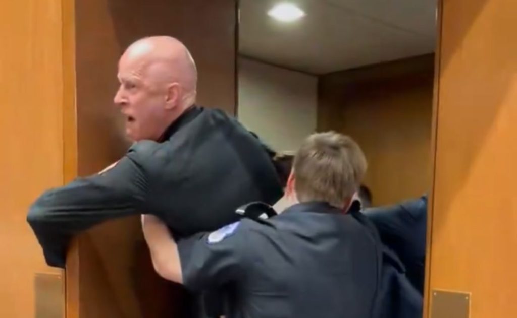 Un marine veterano irrumpió en el Capitolio de EE.UU. para externar su rechazo a la guerra contra Irán, lo que provocó que fuera expulsado de la sala. Senator Sheehy joined Capitol Police in lifting up and ejecting anti war protestor Brian McGinnis from a SASC subcommittee hearing. McGinnis is a Green Party candidate running for […]