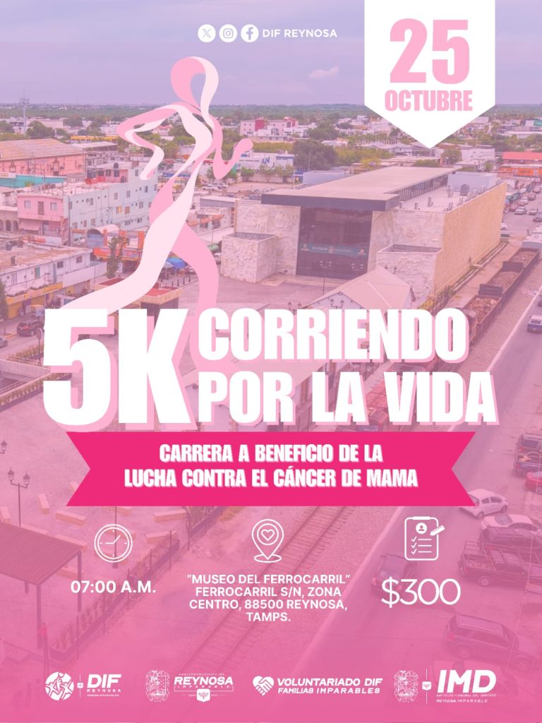 El Alcalde Carlos Peña Ortiz hace una cordial invitación a la ciudadanía a participar en la Carrera 5K “Corriendo por la Vida”, organizada por el Sistema DIF Reynosa, a beneficio de la lucha contra el cáncer de mama. La justa deportiva se llevará a cabo el próximo 25 de octubre a las 7:00 de la […]