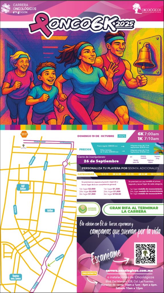 Por Juan Monserrat Castillo Reynosa, Tamps.– Con el objetivo de fortalecer la cultura de prevención y apoyo a pacientes en tratamiento contra el cáncer, el Centro Oncológicos anunció la sexta edición de la carrera Onco6K 2025, que se llevará a cabo el próximo domingo 19 de octubre. El evento contempla dos modalidades: una carrera de […]
