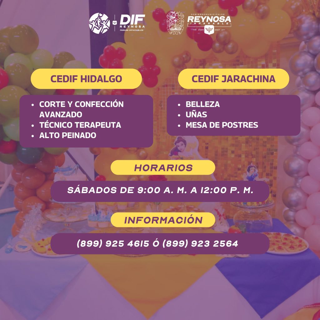 El Sistema DIF-Reynosa que preside Carlos Luis Peña Garza, informa a la ciudadanía que aún se encuentran disponibles los últimos lugares en los talleres sabatinos del CEDIF, una opción que permite adquirir nuevos conocimientos y fortalecer habilidades para el desarrollo personal. Los talleres de los Centros para el Desarrollo Integral de la Familia, representan una […]