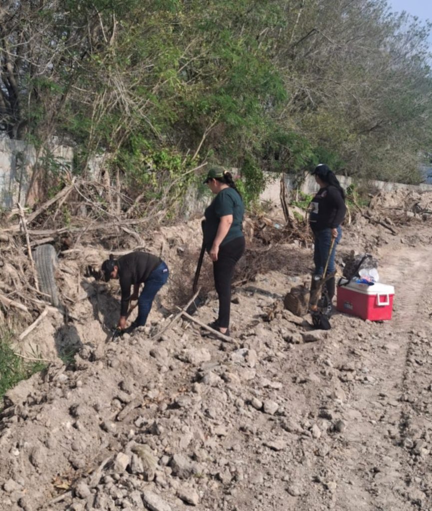 Reynosa, Tam.– Integrantes del Colectivo Amor por los Desaparecidos en Tamaulipas regresaron al mismo sitio donde en 2023, fueron localizadas 16 fosas clandestinas con un total de 27 cuerpos, para realizar una nueva búsqueda de restos humanos en ese tramo de la ciudad fronteriza, detrás de la cementera y en los límites con las colonias Fuentes y Lomas Arboledas, donde se llevan a cabo trabajos de revestimiento del canal Guillermo Rodhe.