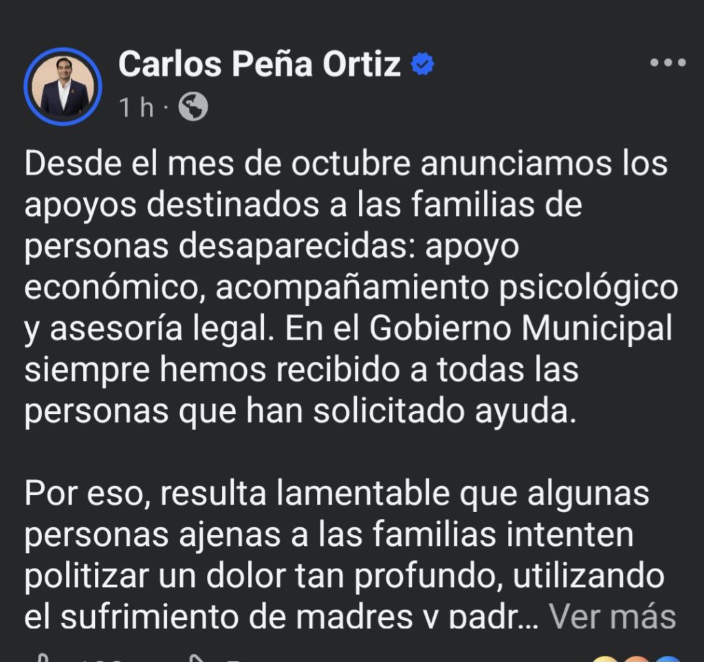 El edil aseguró que su administración mantiene un compromiso absoluto con quienes enfrentan esta dolorosa situación y advirtió que nadie debería aprovecharse del sufrimiento de las familias buscadoras.