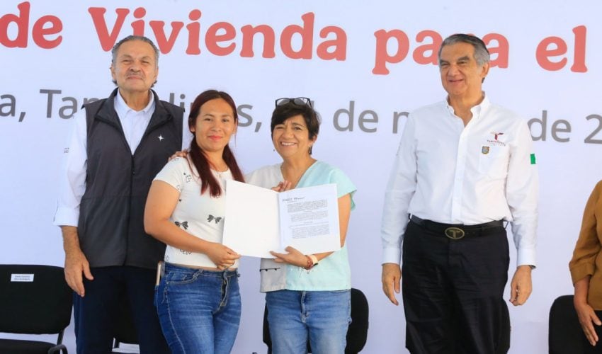 El gobernador Américo Villarreal Anaya agradeció la distinción de realizar la entrega de vivienda desde Tamaulipas y destacó el respaldo de la presidenta Claudia Sheinbaum y su preocupación para impulsar el bienestar y el desarrollo humano.