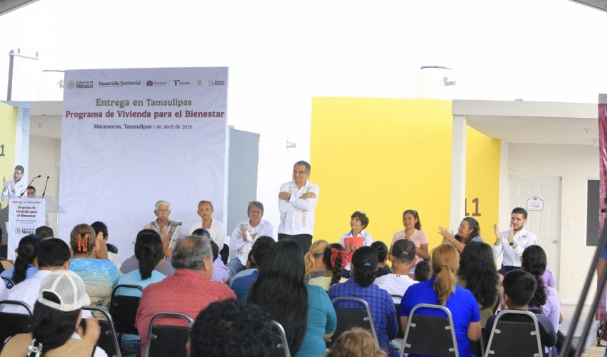 Matamoros, Tamaulipas.-  Tamaulipas refrendó su liderazgo nacional en el programa de Vivienda para el Bienestar, al entregar en el desarrollo habitacional El Mezquital, 19 casas nuevas construidas por la Comisión Nacional de Vivienda para familias de pescadores, en un evento encabezado por la presidenta Claudia Sheinbaum, en enlace virtual con el gobernador Américo Villarreal Anaya.