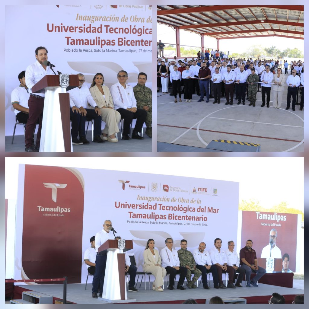 Soto la Marina, Tamaulipas.- El modelo humanista para la educación que impulsan los gobiernos de la transformación contribuye para tener cada vez una mejor sociedad, afirmó el gobernador Américo Villarreal Anaya al entregar obras por más de 19 millones de pesos en la Universidad Tecnológica del Mar Tamaulipas Bicentenario.