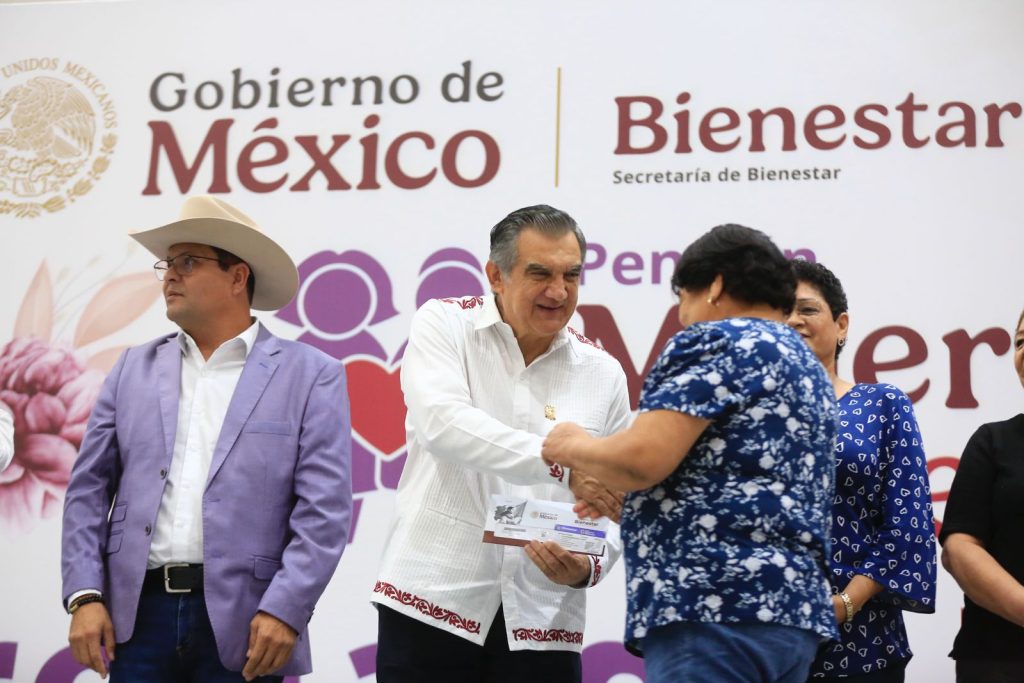 Durante la entrega simbólica a 30 de las dos mil beneficiarias presentes, acompañado por Luis Lauro Reyes Rodríguez, delegado de Programas Federales para el Desarrollo en Tamaulipas, y de Silvia Casas González, secretaria de Bienestar Social, el gobernador mencionó que, tal como lo ha señalado la presidenta, este apoyo es un reconocimiento a la contribución que durante muchos años han tenido las mujeres como protectoras de la familia y protectoras de los valores más valiosos de la formación e integración de la sociedad.