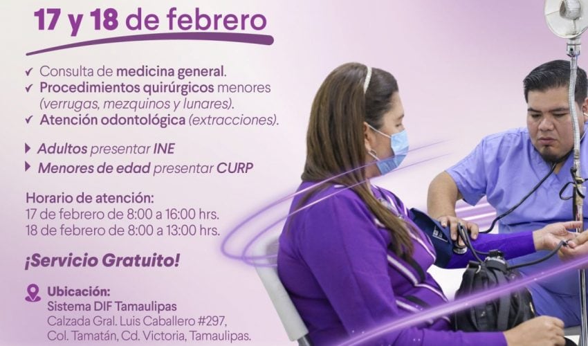 La atención se brindará en las instalaciones del Sistema DIF Tamaulipas, ubicadas en la Calzada Gral. Luis Caballero #297, en un horario de 8:00 de la mañana a 4:00 de la tarde el 17 de febrero, y de 8:00 de la mañana a 1:00 de la tarde el 18 de febrero.