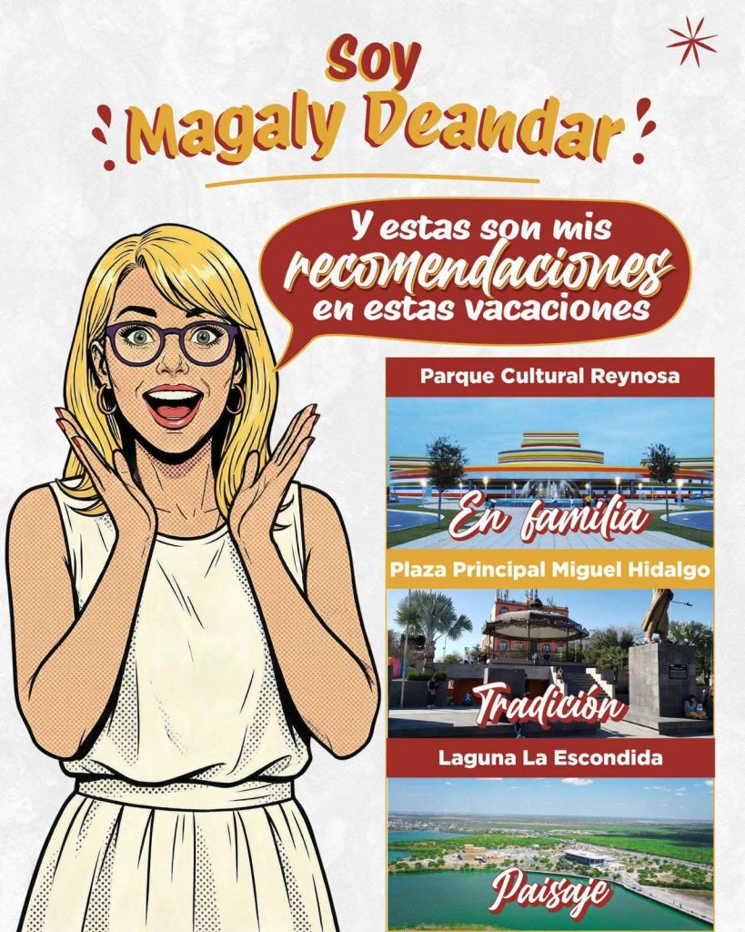 Reynosa, Tamaulipas.– La diputada local Magaly Deandar hizo un llamado a la ciudadanía a disfrutar del periodo vacacional sin salir de la ciudad, destacando las opciones recreativas y de convivencia familiar que ofrece Reynosa.