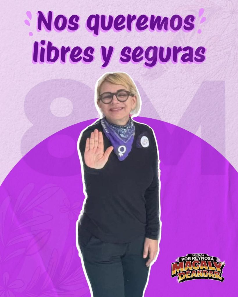 En el marco del Día Internacional de la Mujer, la diputada local por Reynosa, Magaly Deandar, se pronunció en redes sociales a favor de continuar la lucha por los derechos, la seguridad y la justicia para las mujeres.