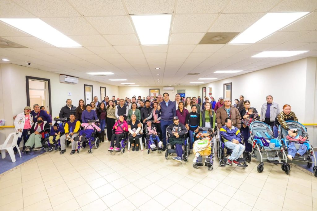 El Alcalde Carlos Peña Ortiz, acompañado por su esposa Alejandra Yelitza Garza, Presidenta del Voluntariado DIF-Reynosa, hizo entrega de sillas de ruedas para niños con parálisis cerebral, PCI, y aparatos especiales para personas con discapacidad en una emotiva ceremonia llevada a cabo en el Centro de Rehabilitación Integral, CRI.