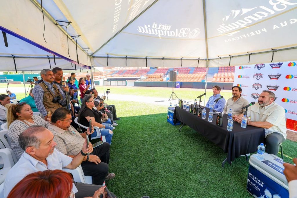 “En rueda de prensa anunciamos que este fin de semana Reynosa tendrá beisbol de gran nivel con la visita de los Venados de Mazatlán, quienes se enfrentarán a la selección de nuestra ciudad en el Parque Adolfo López Mateos”, aseguró el Alcalde Carlos Peña Ortiz.