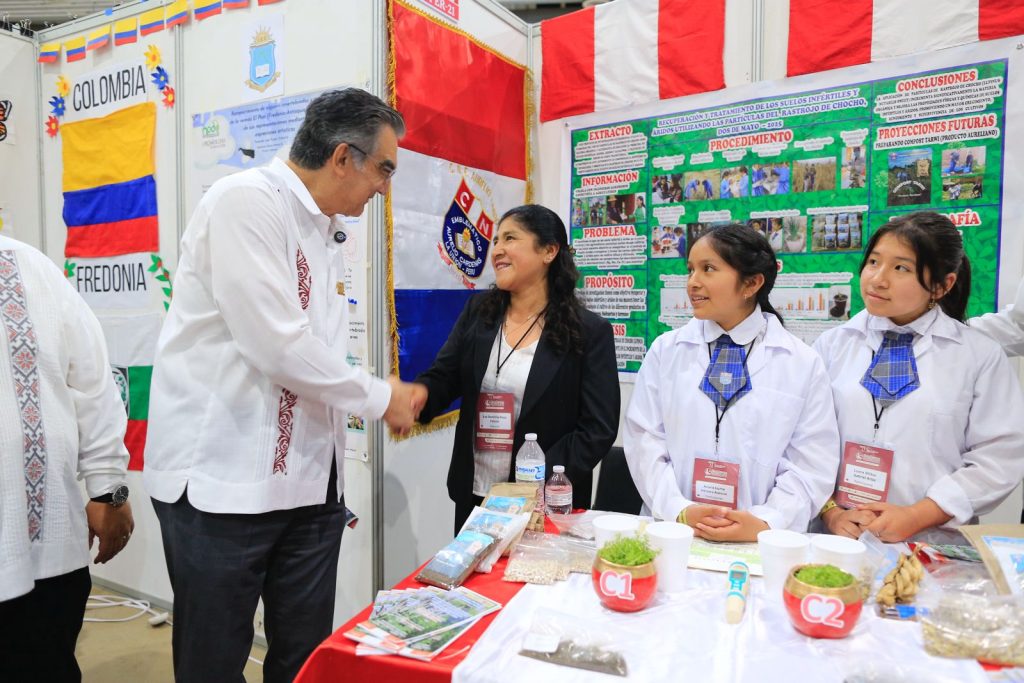 El mandatario estatal cortó el listón inaugural de la Expo y realizó un amplio recorrido por los stands en donde se ubican los 500 proyectos, incluyendo a los países participantes: Costa Rica, Alemania, Luxemburgo, Brasil, Colombia, Chile, Paraguay, Perú y Belice.