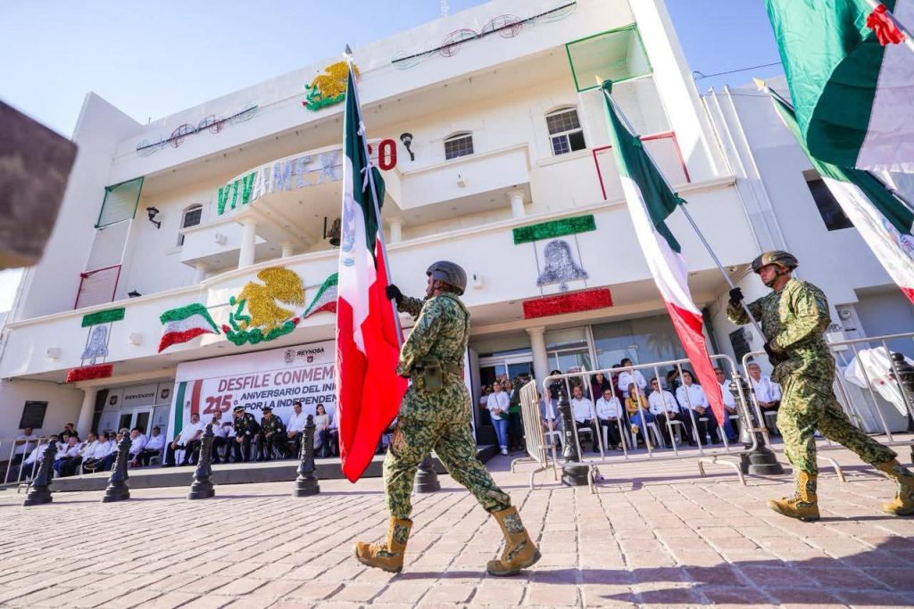 Reynosa, Tam.– El alcalde Carlos Peña Ortiz presenció el desfile conmemorativo por el 215 aniversario de la Independencia de México, realizado en el primer cuadro de la ciudad frente a la plaza Miguel Hidalgo, a un costado del palacio municipal.