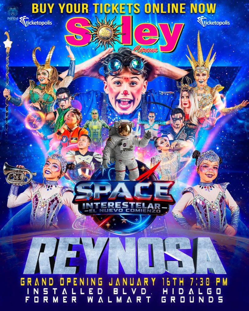 Reynosa, Tam.- La ciudad vivirá una experiencia “fuera de este mundo” con la llegada del Fantastic Soley Circus que presenta su nueva producción “Space Interstellar – El nuevo comienzo”, un show completamente renovado, más grande y espectacular.