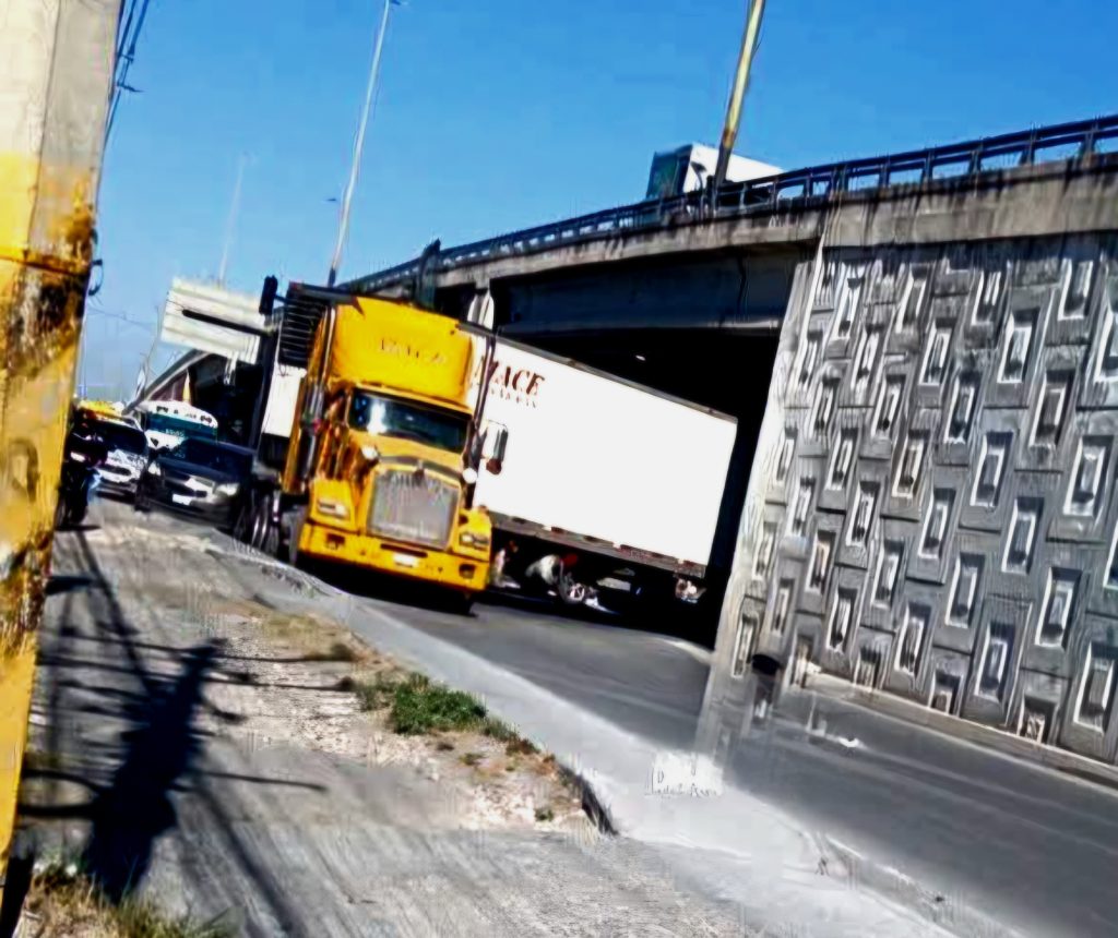 De acuerdo con los primeros reportes, la pesada unidad quedó atorada al intentar pasar por la parte inferior del puente, bloqueando parcialmente el tránsito y obligando a los automovilistas a extremar precauciones al circular por la zona.