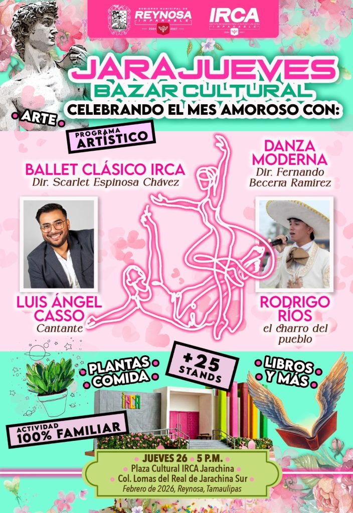 El Gobierno de Reynosa, que preside el Alcalde Carlos Peña Ortiz, invita a la comunidad a disfrutar este jueves 26 de febrero del tradicional Jarajueves, que se llevará a cabo en la Plaza Cultural IRCA Jarachina a las 5:00 P. M.